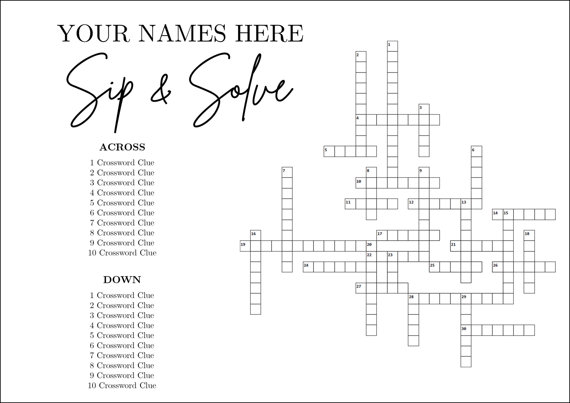 Add a playful and elegant touch to your special day with our Sip & Solve Wedding Crossword Sign - a beautifully designed, fully personalised feature that gets your guests laughing, chatting, and reminiscing together.