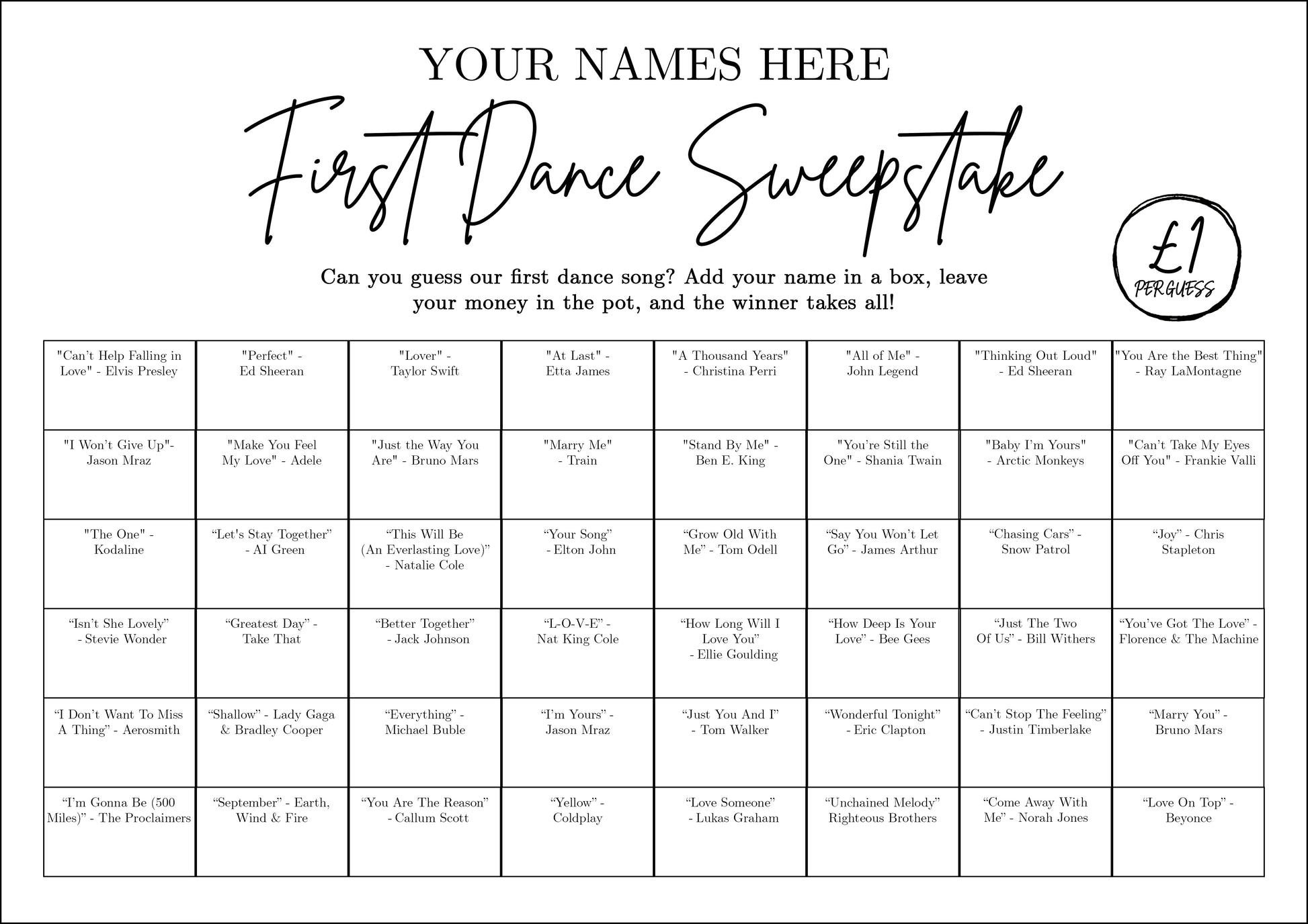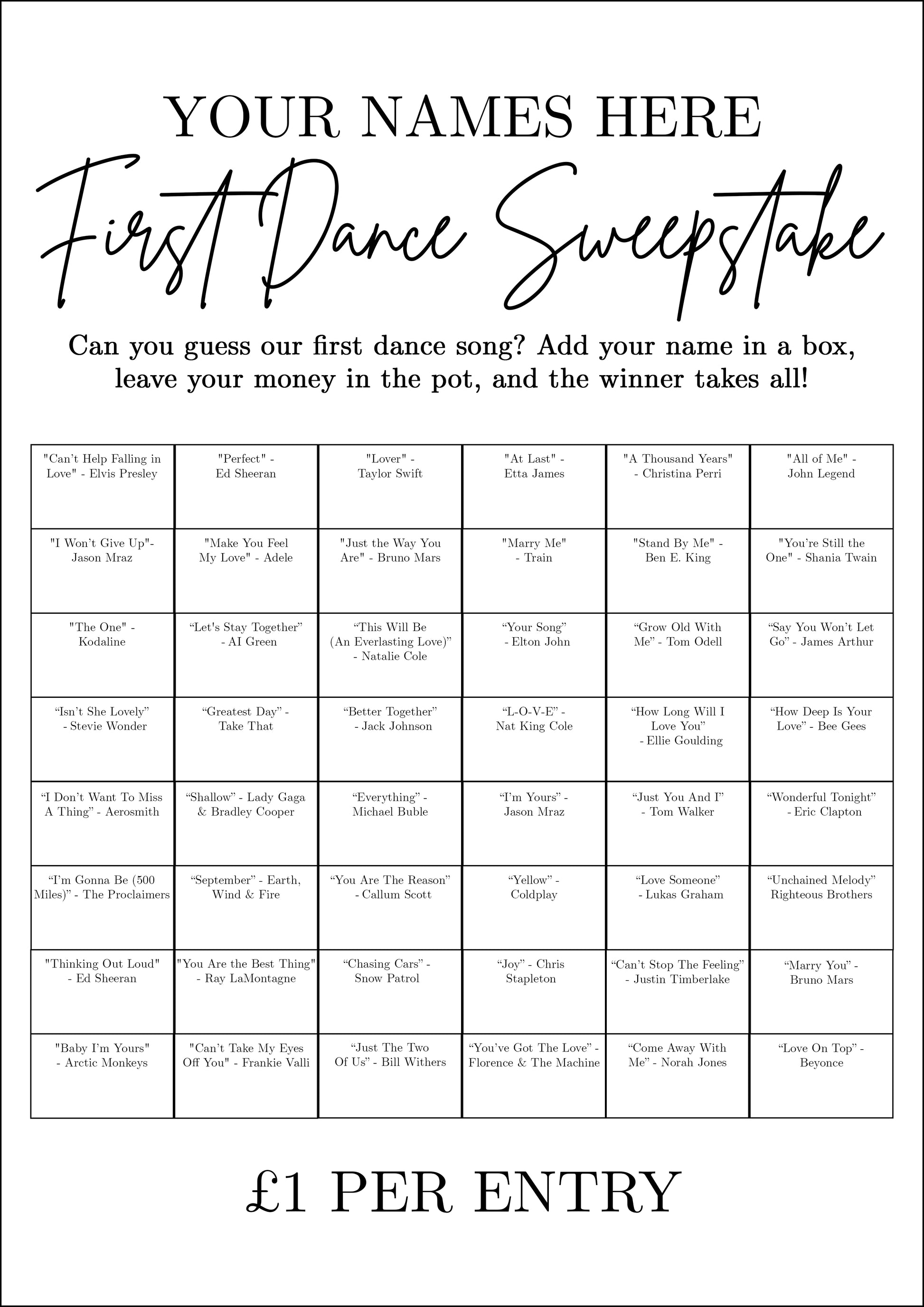 Friends and family can write down their guesses for your first dance song - from cheesy classics to heartfelt hits - and see who knows you best when the moment finally arrives.